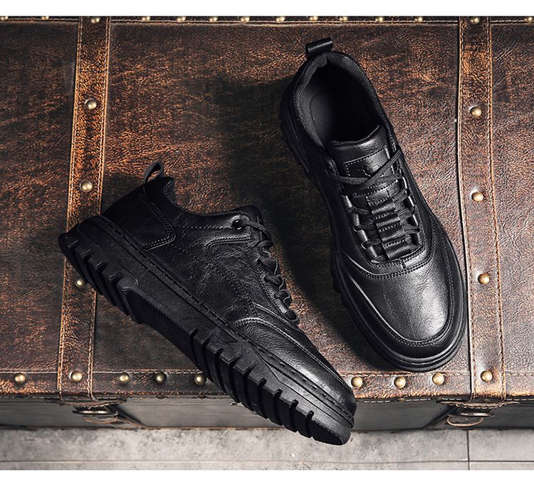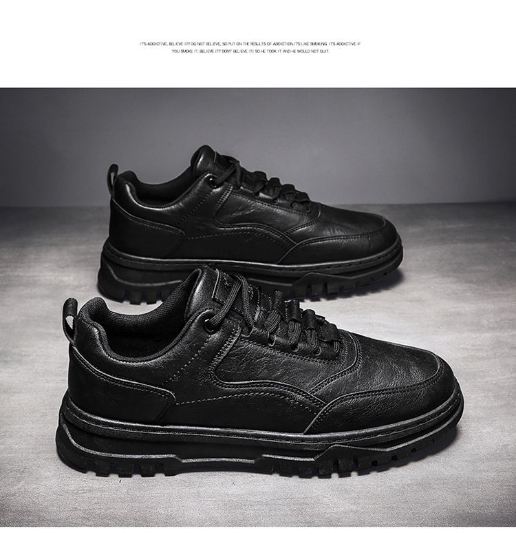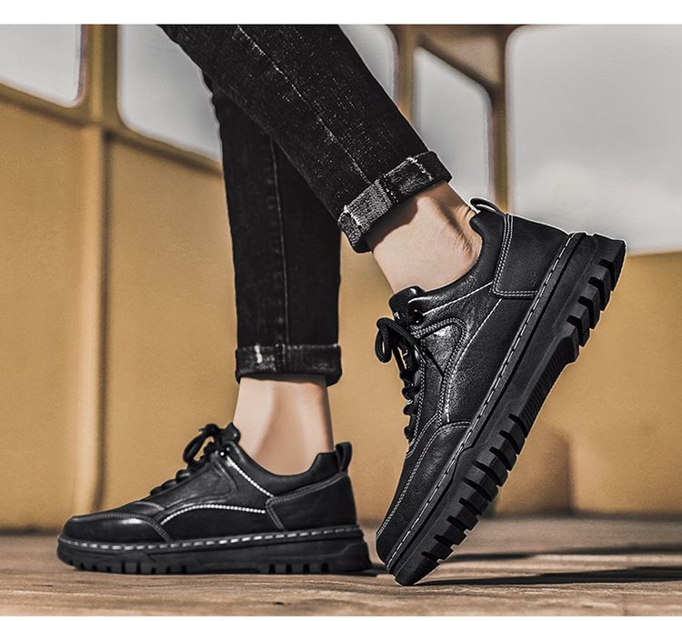 【源頭廠家】細膩皮革鞋面柔軟耐穿大底男士低幫馬丁靴【全黑色】一雙