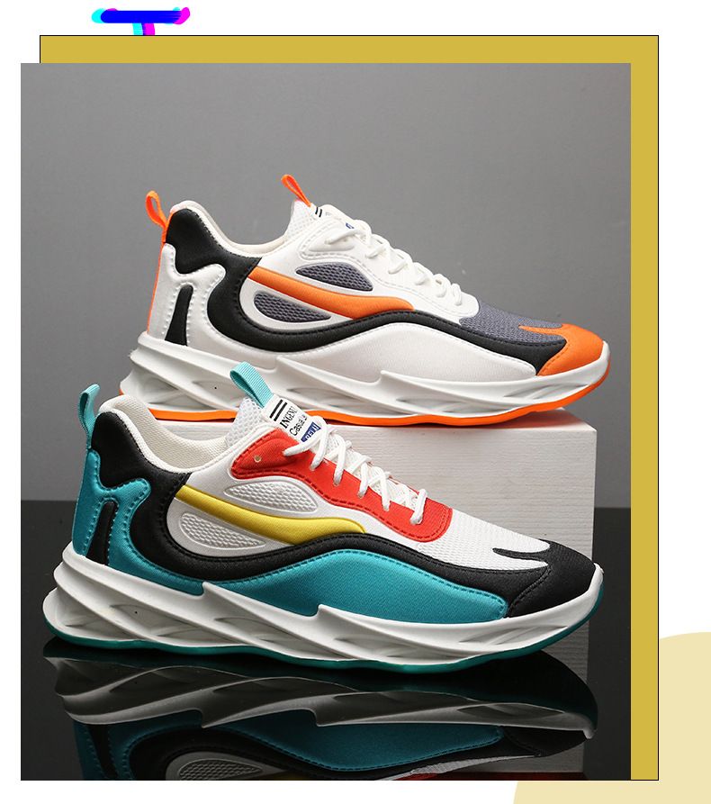 運動風多色拼接鞋面刀鋒男鞋【橘黑灰色】+【藍白深藍色】各一雙(優惠400)