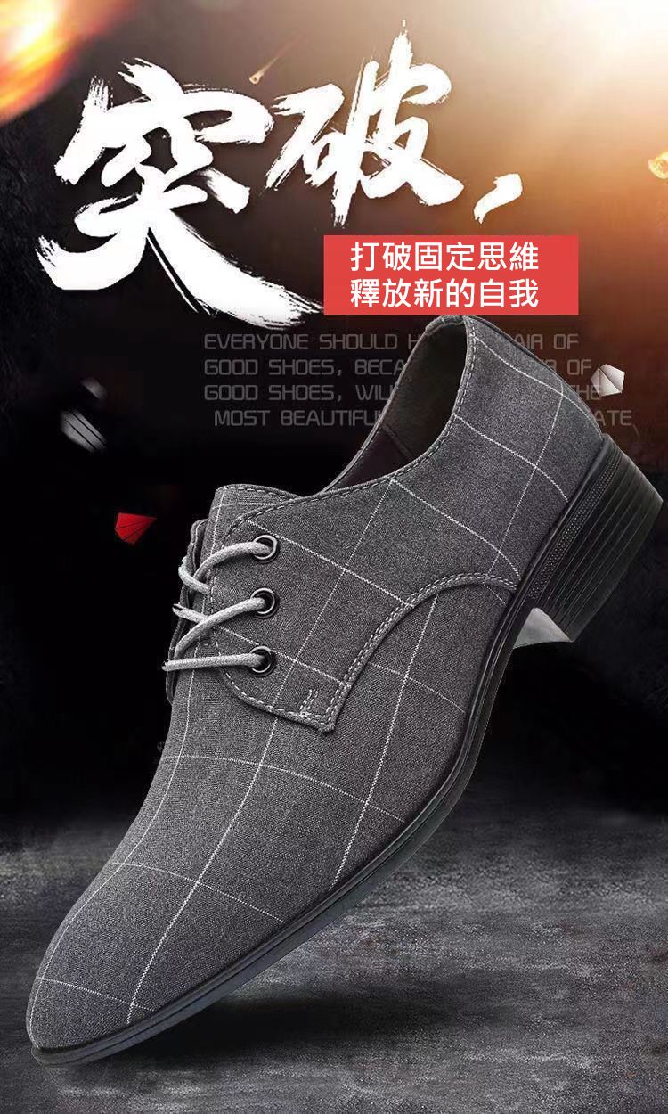 【亞麻透氣,增高3cm!】男士百搭低幫尖頭休閒鞋