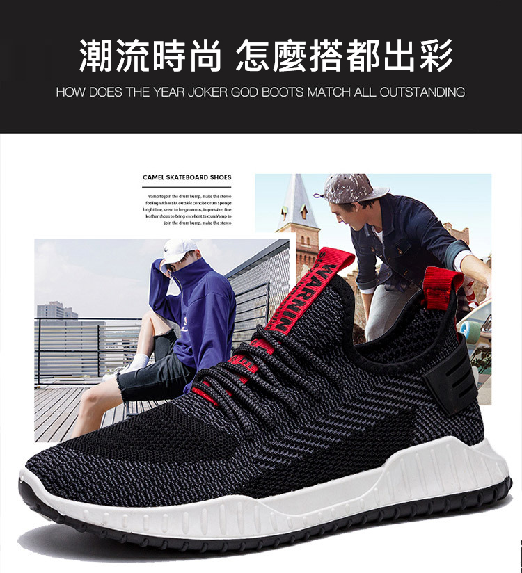 柔韌透氣輕便緩震一體飛織跑鞋【買一送一】【黑色】+【卡其色】各一雙