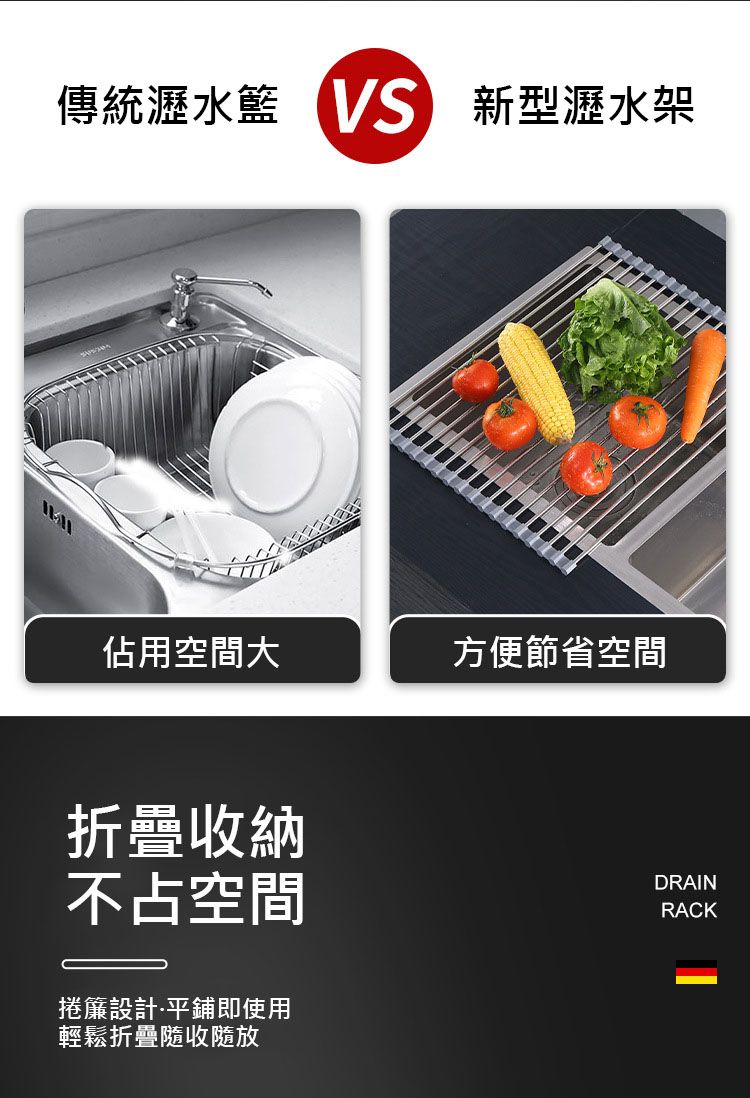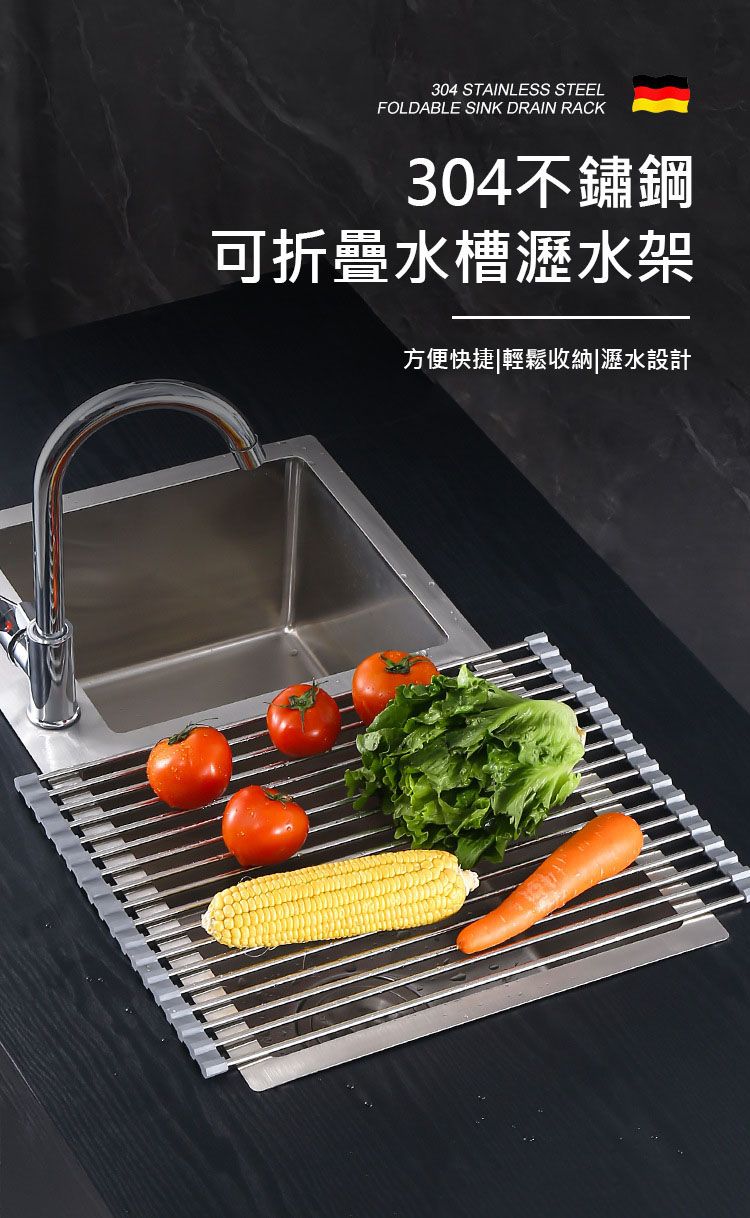 【廚房必備】304不鏽鋼可折疊瀝水架