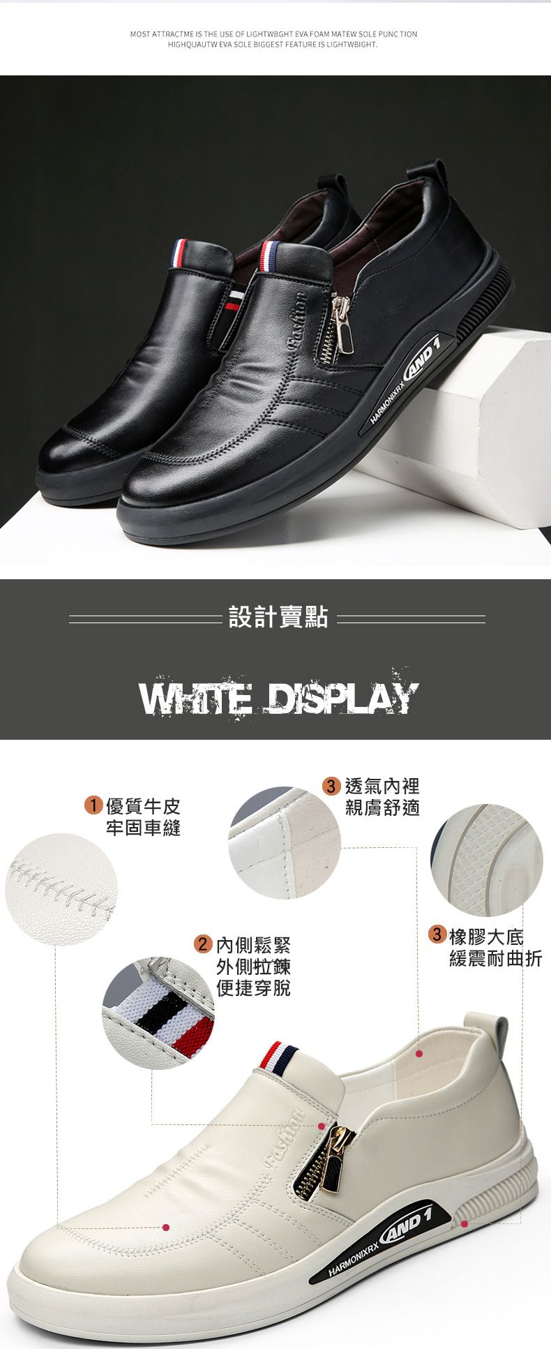 年度熱銷夏季透氣套腳休閒男鞋【買一送一】【白色】+【黑色】各一雙
