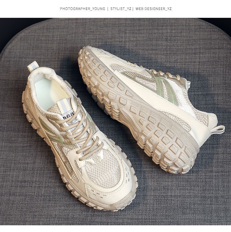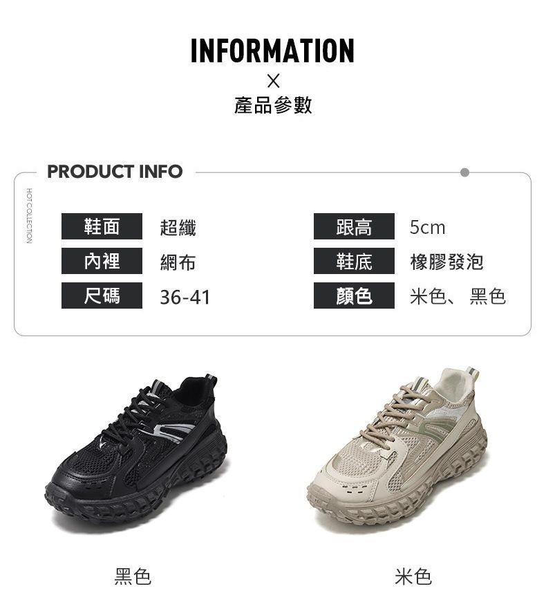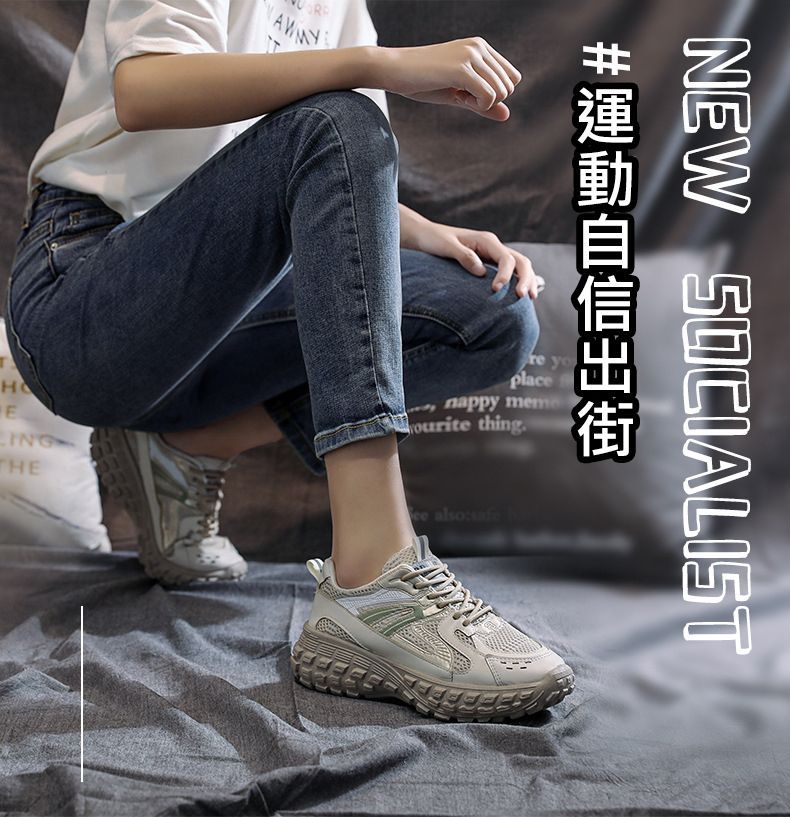 【舒適增高5cm!】新款女士透氣休閒輪胎底老爹鞋