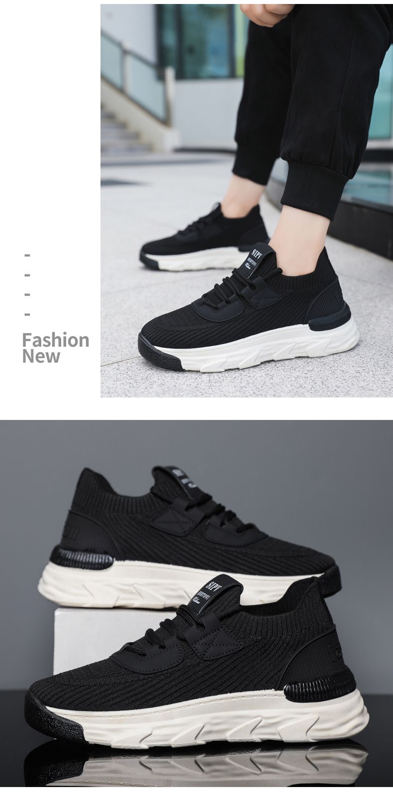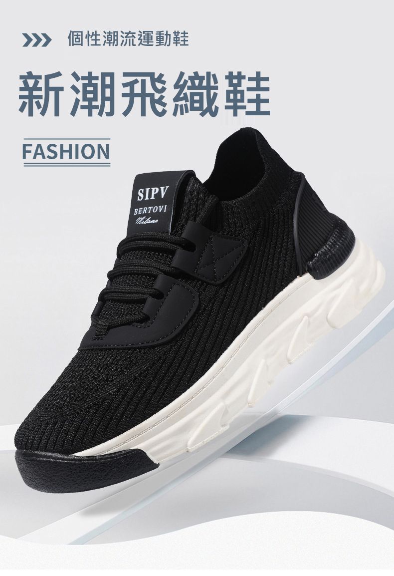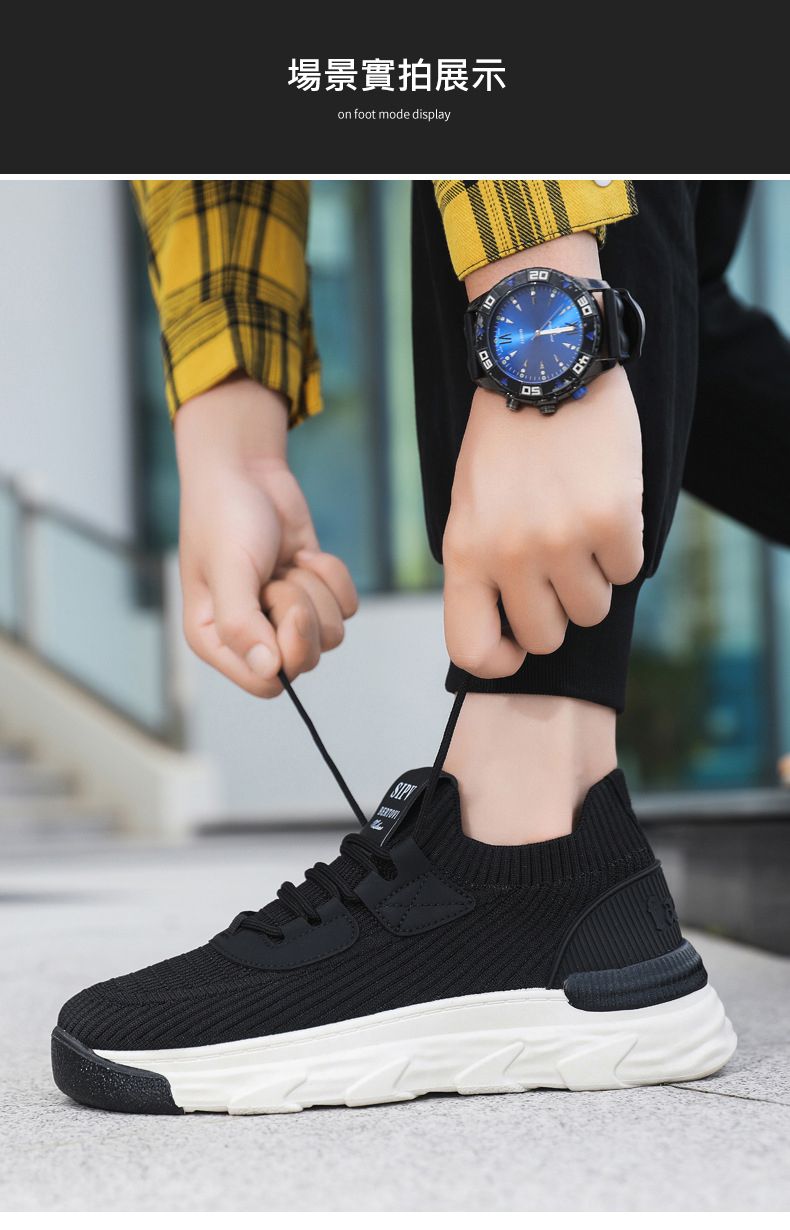 【無拘無束!】大碼春秋透氣針織男運動鞋【黑色】一雙