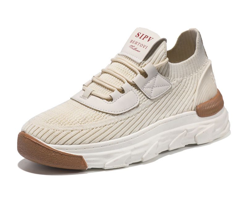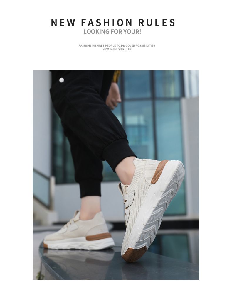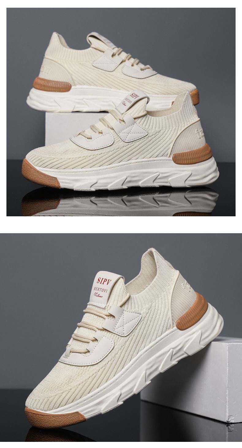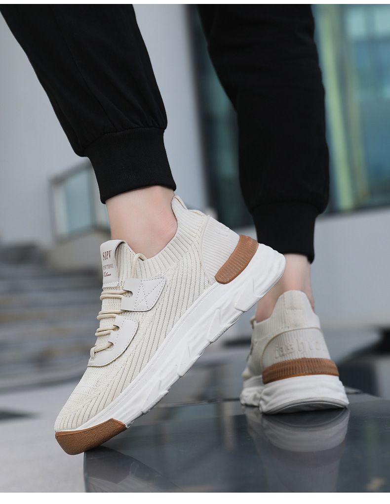 【無拘無束!】大碼春秋透氣針織男運動鞋【米色】一雙