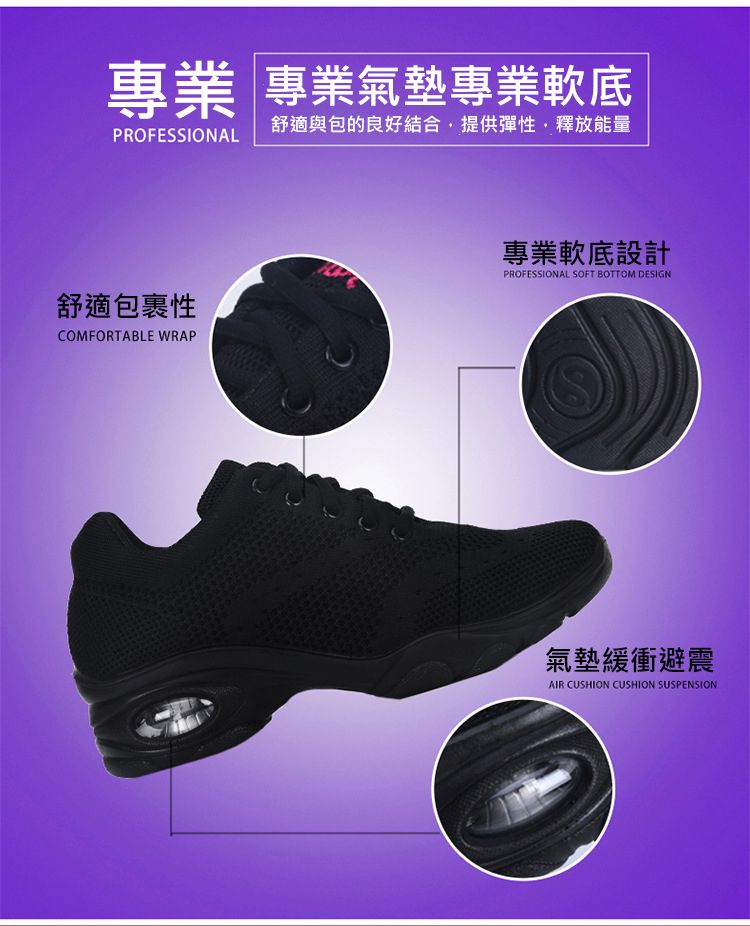新款舒適百搭防震氣囊底輕盈飛織舞蹈鞋【黑色】+【白色】各一雙(優惠400)