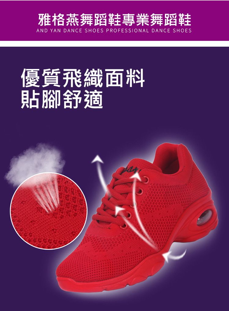 新款舒適百搭防震氣囊底輕盈飛織舞蹈鞋【紅色】+【白色】各一雙(優惠400)