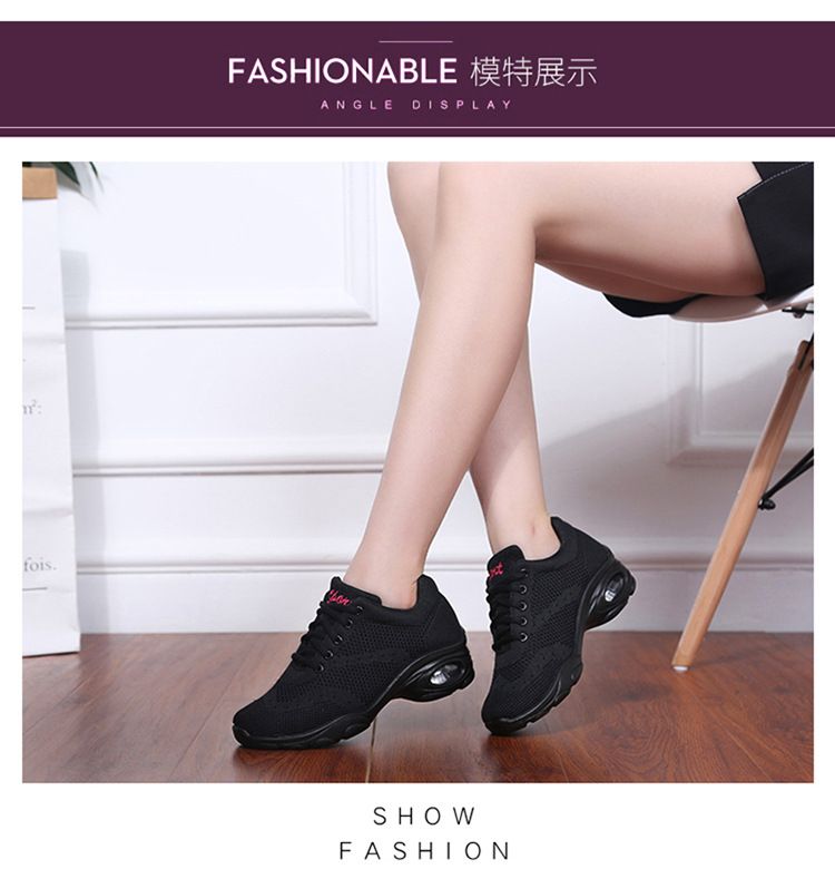 新款舒適百搭防震氣囊底輕盈飛織舞蹈鞋【黑色】一雙