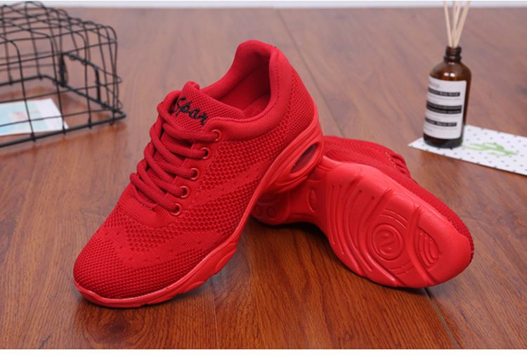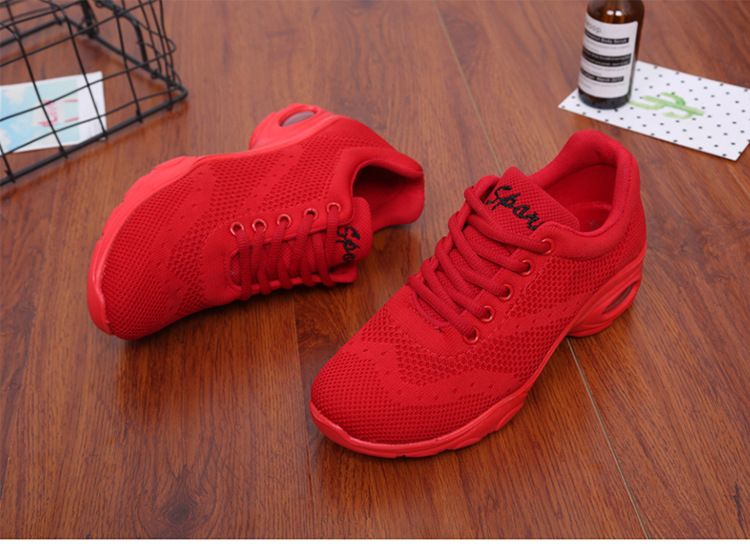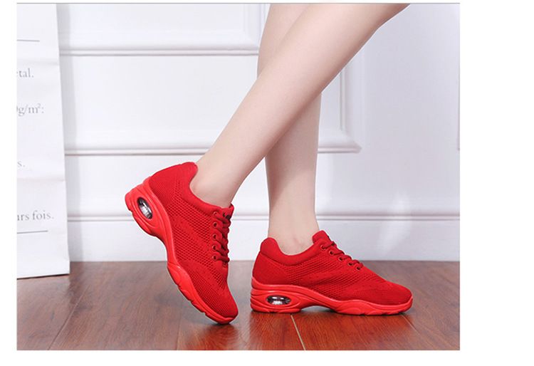 新款舒適百搭防震氣囊底輕盈飛織舞蹈鞋【紅色】一雙