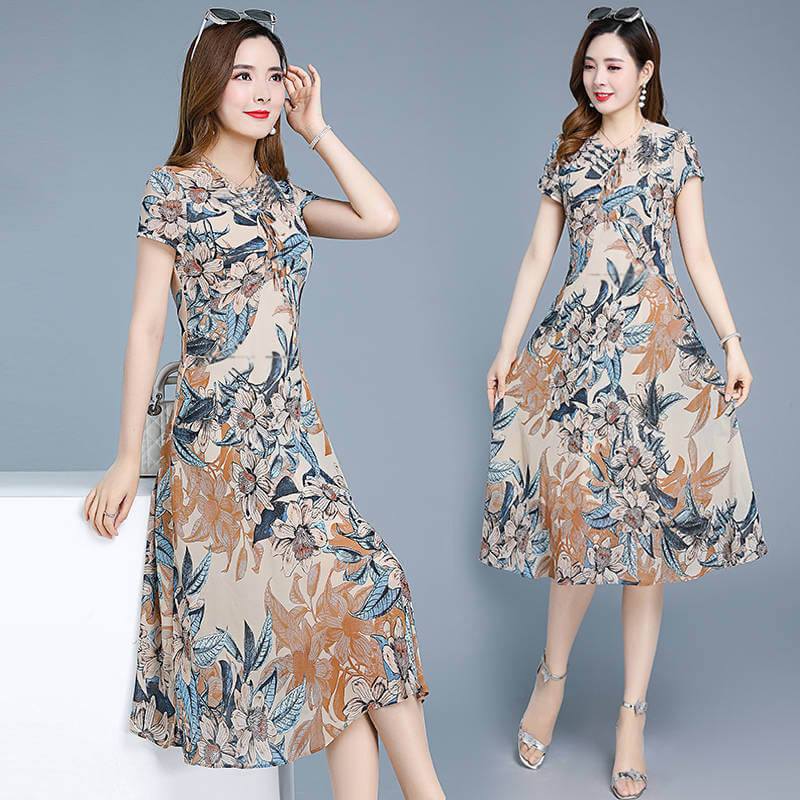 氣質清涼媽媽中長款連衣裙【買一送一】藍色+磚紅色各一件(到手兩件,每件均價499元)