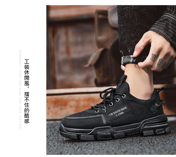 【復古工裝范】男士戶外休閒鞋【黑色】一雙