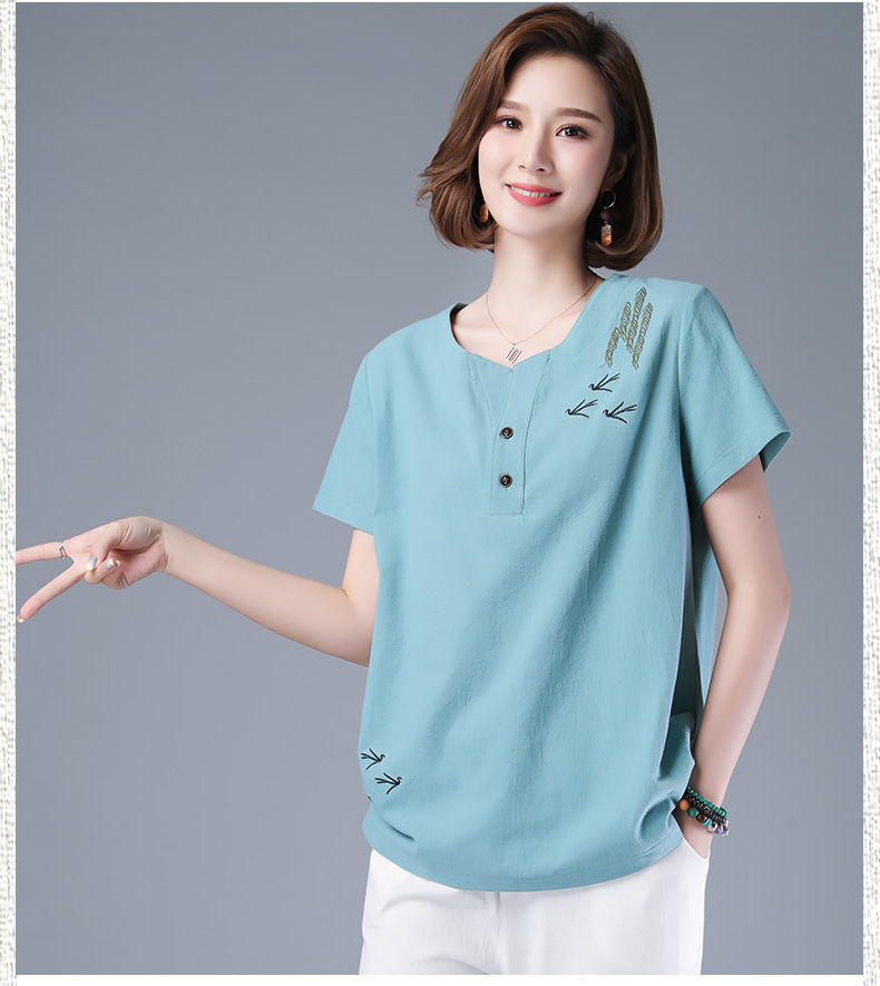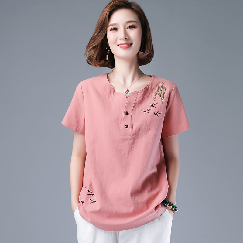 棉麻復古風短袖女士T恤【買一送一】粉色+藍色各一件(到手2件!每件均價549元!)