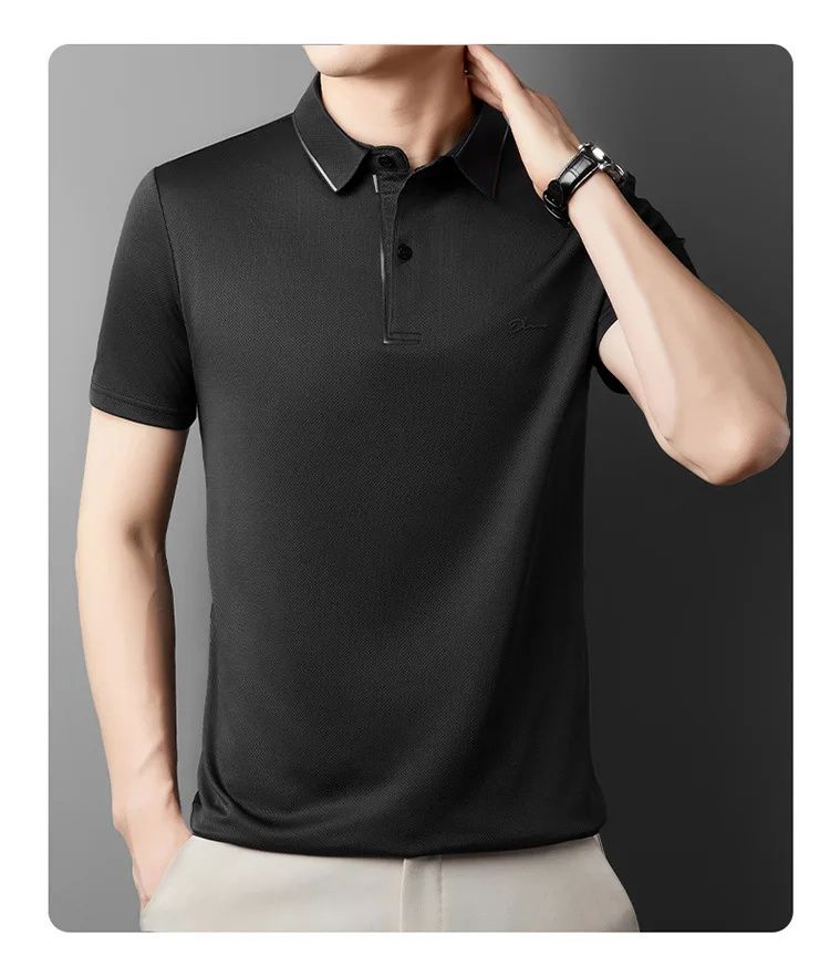 簡約透氣冰絲速乾無痕POLO衫【買一送一】【黑色】+【綠色】各一件(到手兩件,每件均價649元!)