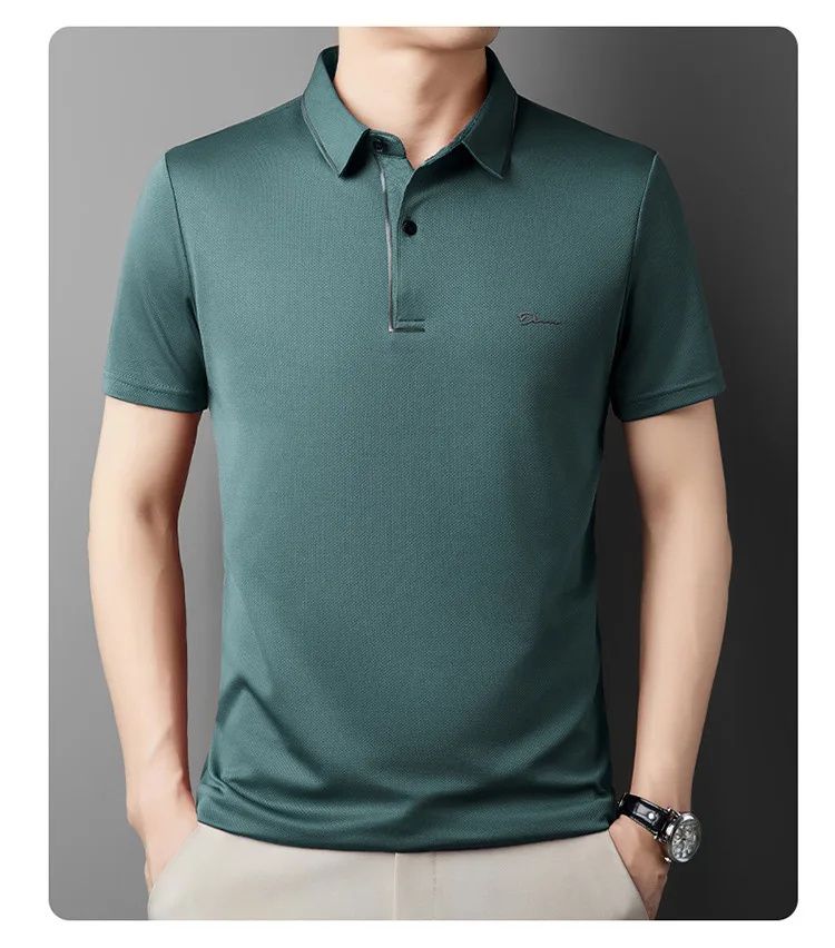簡約透氣冰絲速乾無痕POLO衫【買一送一】【綠色】+【藏青色】各一件(到手兩件,每件均價649元!)