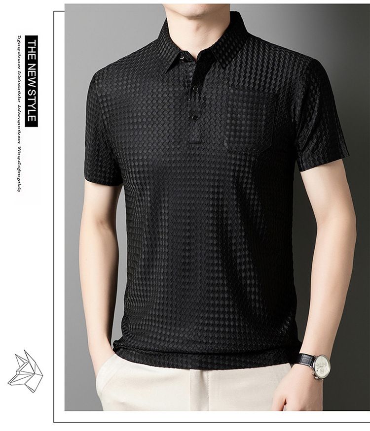 透氣冰絲翻領短袖POLO衫【買一送一】【黑色】+【白色】各一件(到手兩件,每件均價649元!)