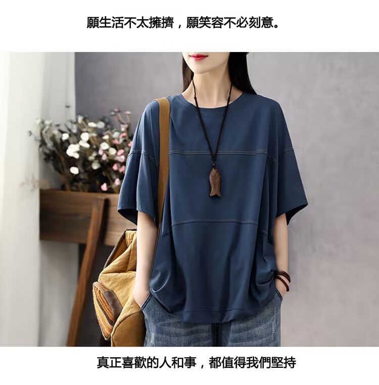 線條拼接復古顯瘦女士短袖【買一送一】藍色兩件(到手兩件,每件均價499元)