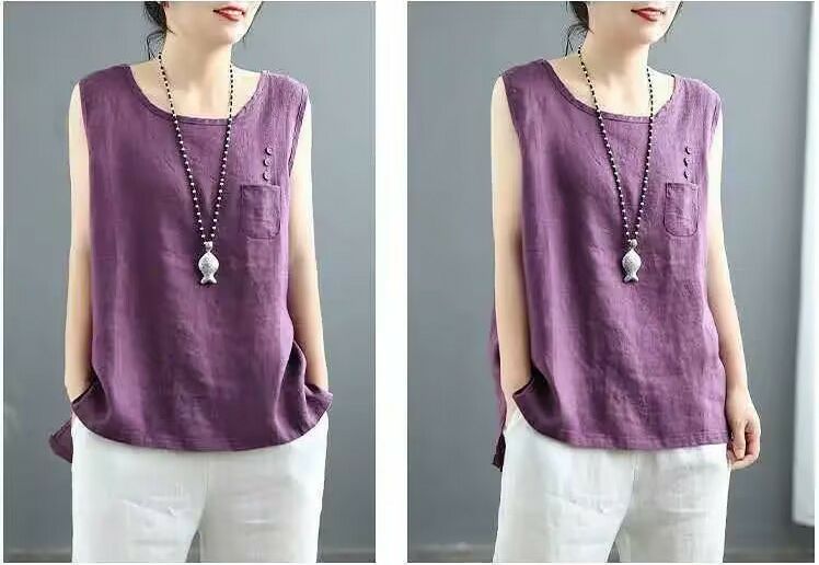 輕柔棉麻舒適百搭無袖圓領吊帶【買一送二】紫色+藍色+白色各一件(到手3件!每件均價333元!)