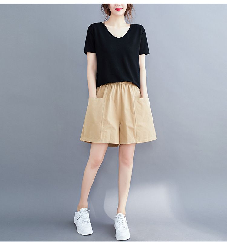 大碼休閒直筒五分褲【買一送二】黑色+綠色+卡其色各一條(到手三條,每條均價333元)
