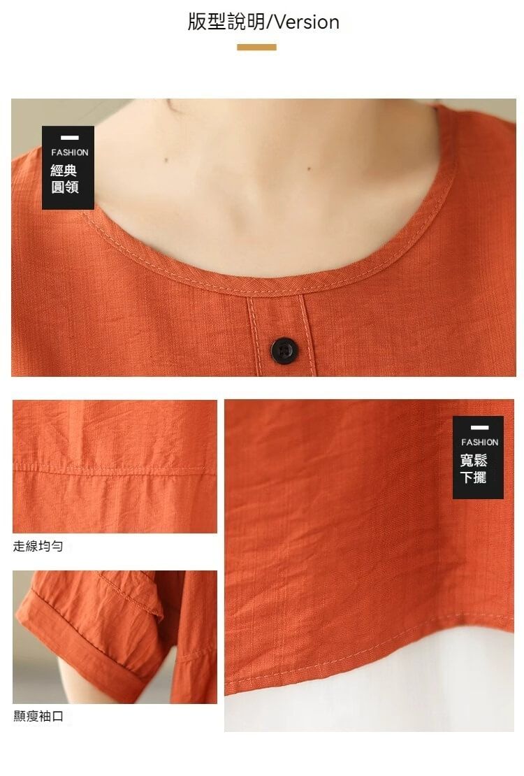 立體寬鬆顯瘦圓領排扣小衫【桔紅色】兩件(到手兩件,每件均價499元)