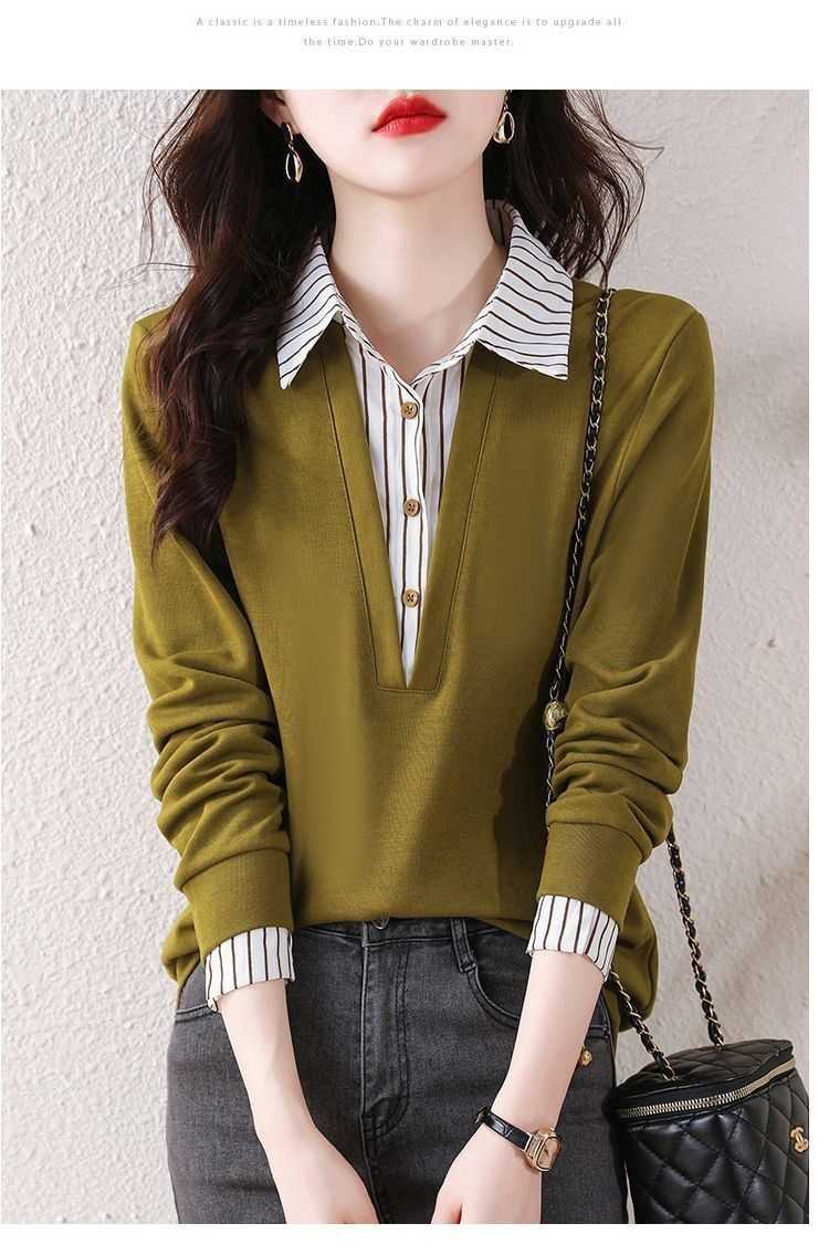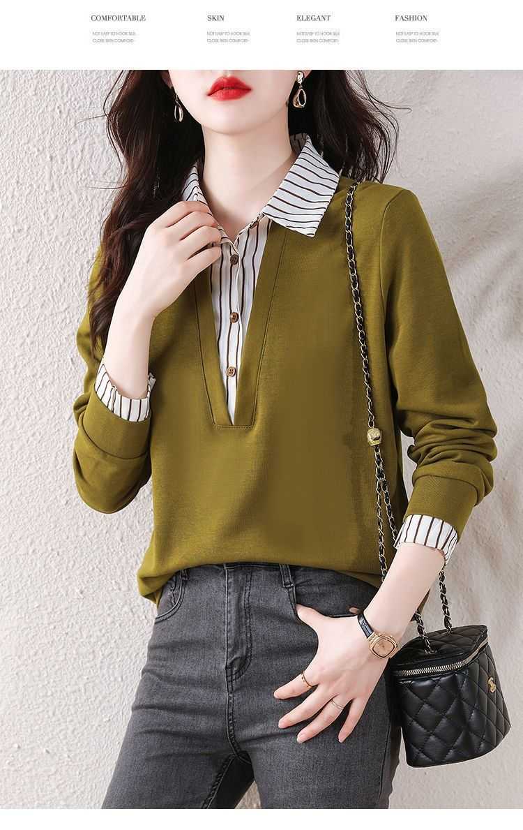 假兩件條紋時尚減齡拼接衛衣【買一送一】黃色+黑色各一件(到手2件,每件均價649元!)