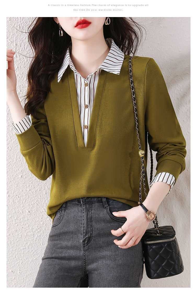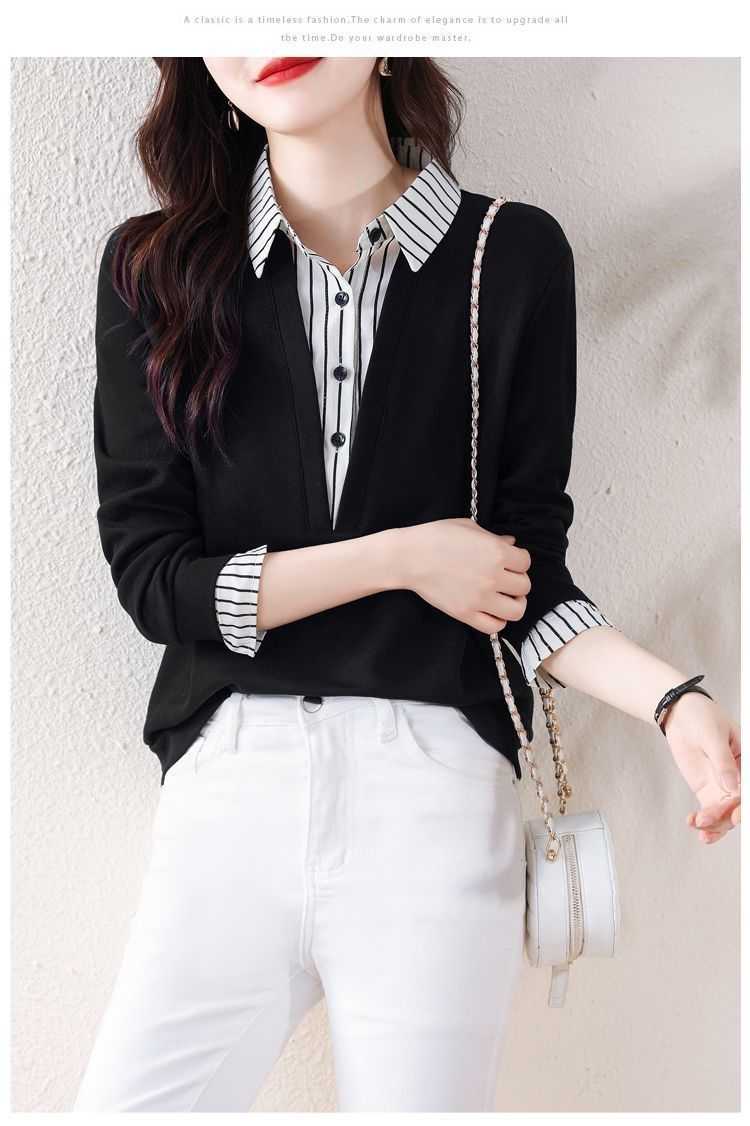 假兩件條紋時尚減齡拼接衛衣(加400秒殺3件!)藏青色+黃色+黑色各一件(到手3件,每件均價566元!)
