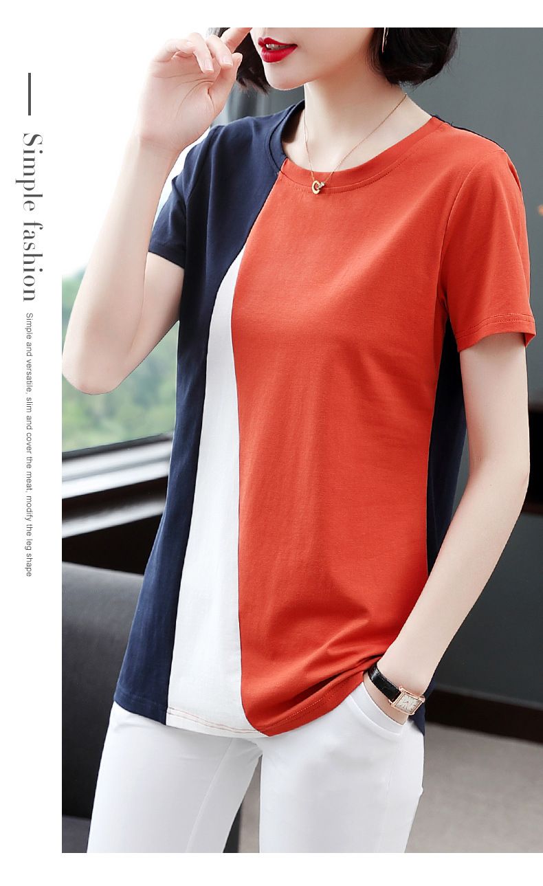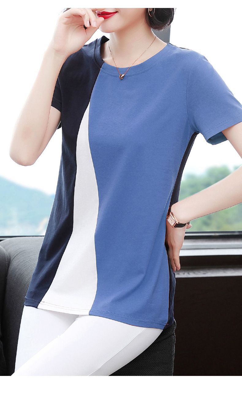 三色拼接中長款上衣【買一送一】【淺藍色】+【橘色】各一件(每件499元)