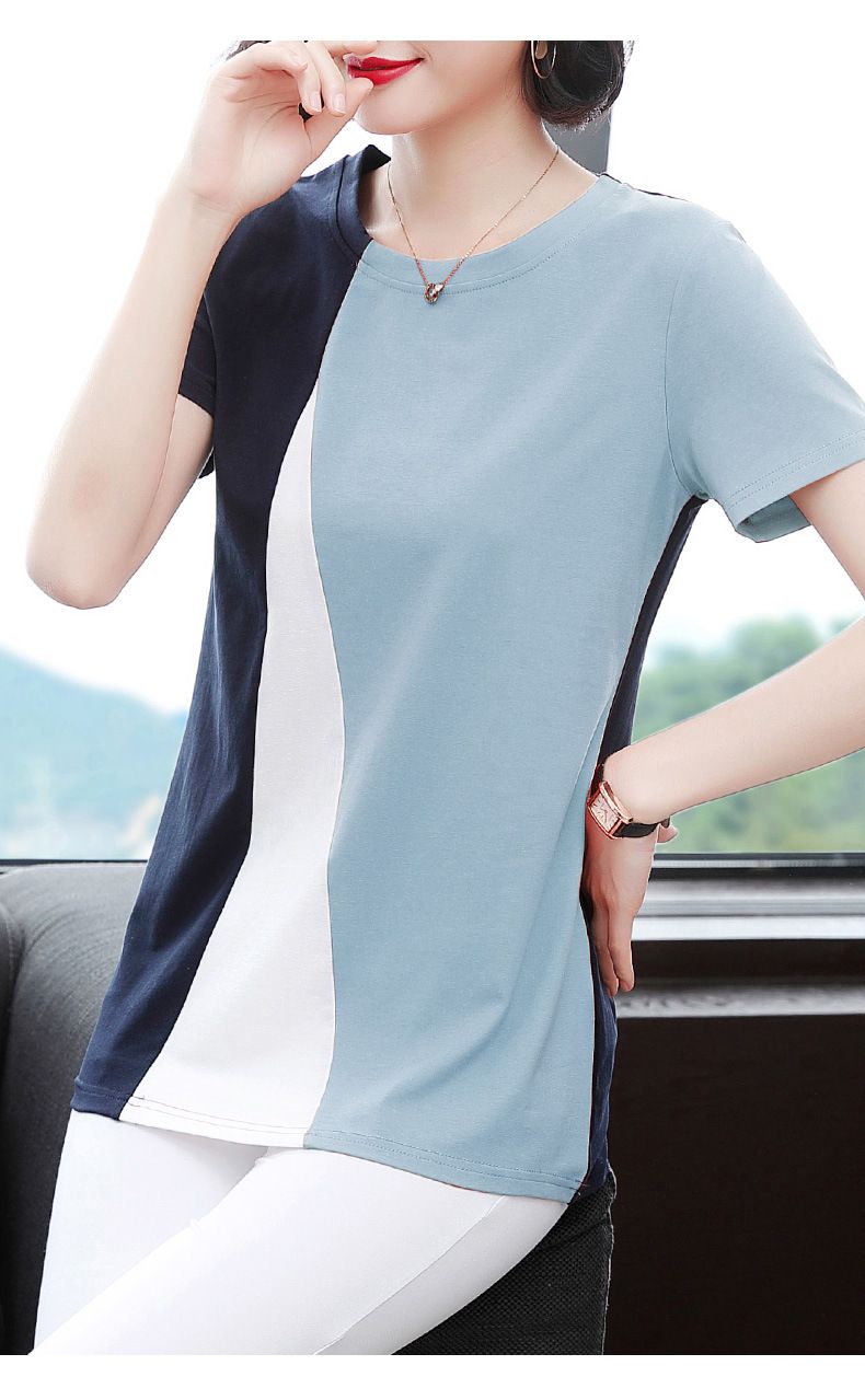 三色拼接中長款上衣【買一送一】【淺藍色】+【咖啡色】各一件(每件499元)