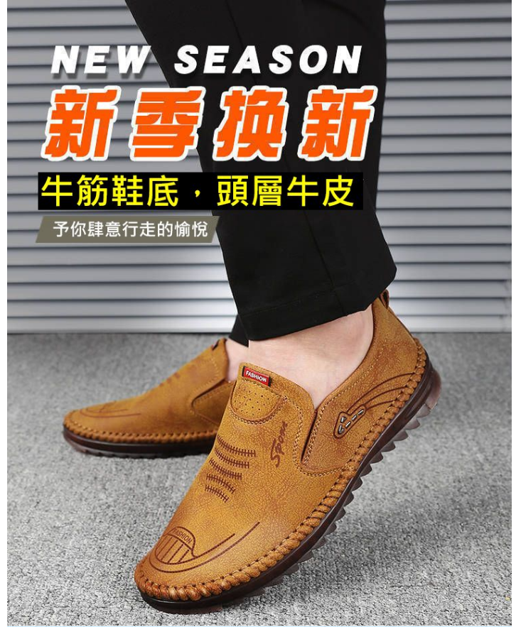 純牛皮男士潮流休閒鞋【買一送一!】【卡其色】+【黑色】各一雙(到手兩雙,每雙549元!)