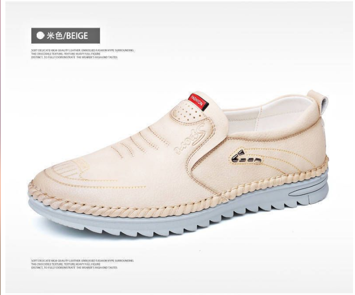 純牛皮男士潮流休閒鞋【買一送一!】【卡其色】+【米白色】各一雙(到手兩雙,每雙549元!)