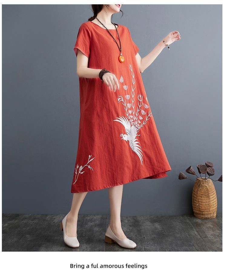 夏季遮肚顯瘦刺繡短袖連衣裙【紅色】+【黃色】各一件(到手兩件,每件均價549元)