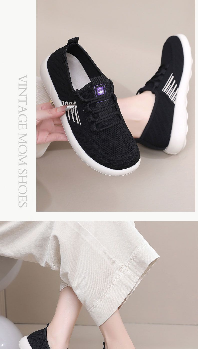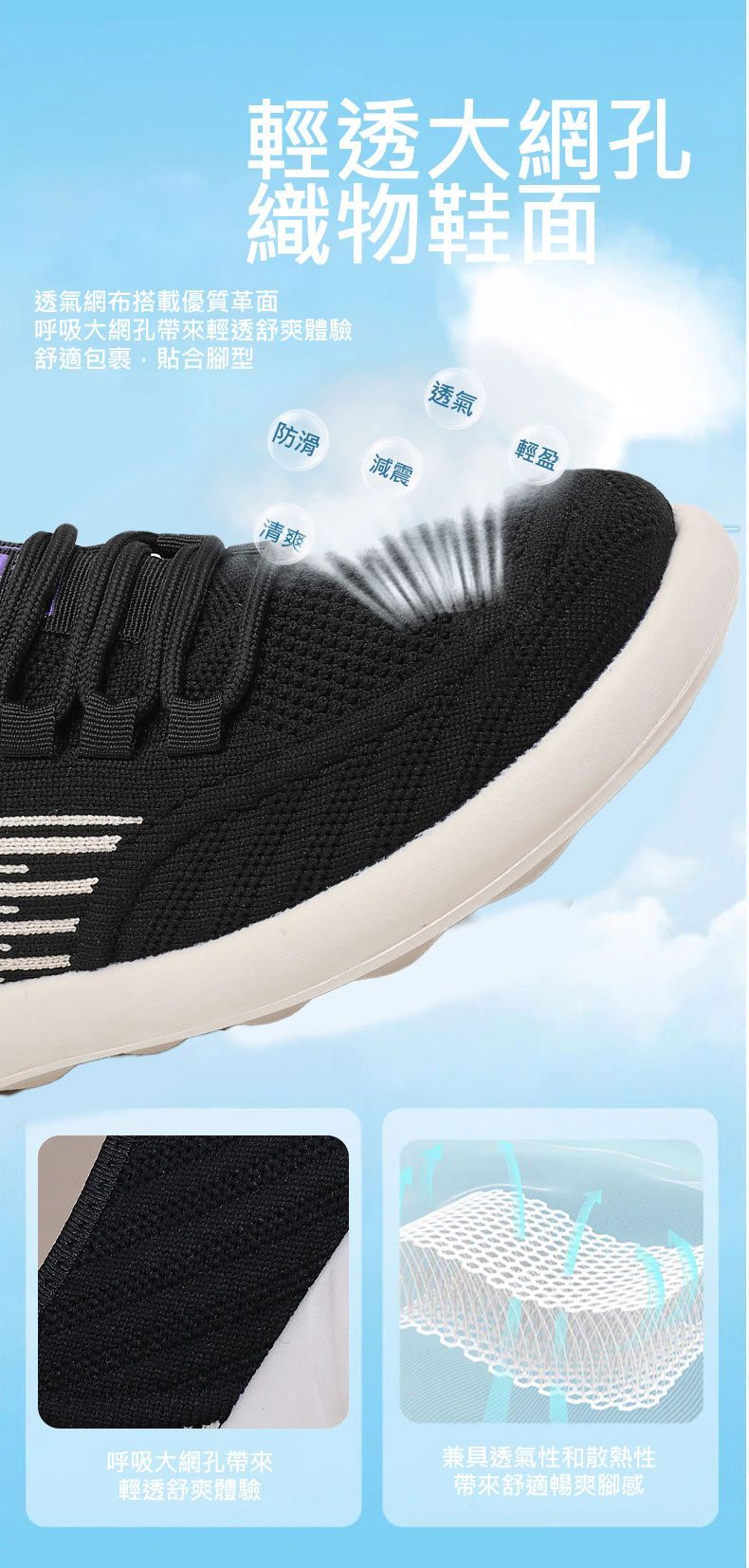 貼合腳部曲線舒適繫帶柔軟透氣飛織鞋【買一送一】【黑色】+【米白色】各一雙(到手兩雙,每雙均價549元!)