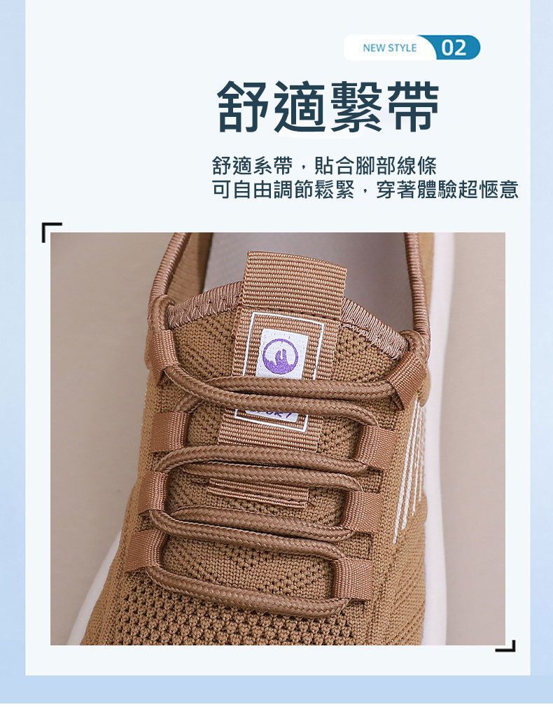 貼合腳部曲線舒適繫帶柔軟透氣飛織鞋【買一送一】【駝色】兩雙(到手兩雙,每雙均價549元!)
