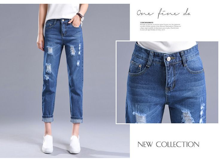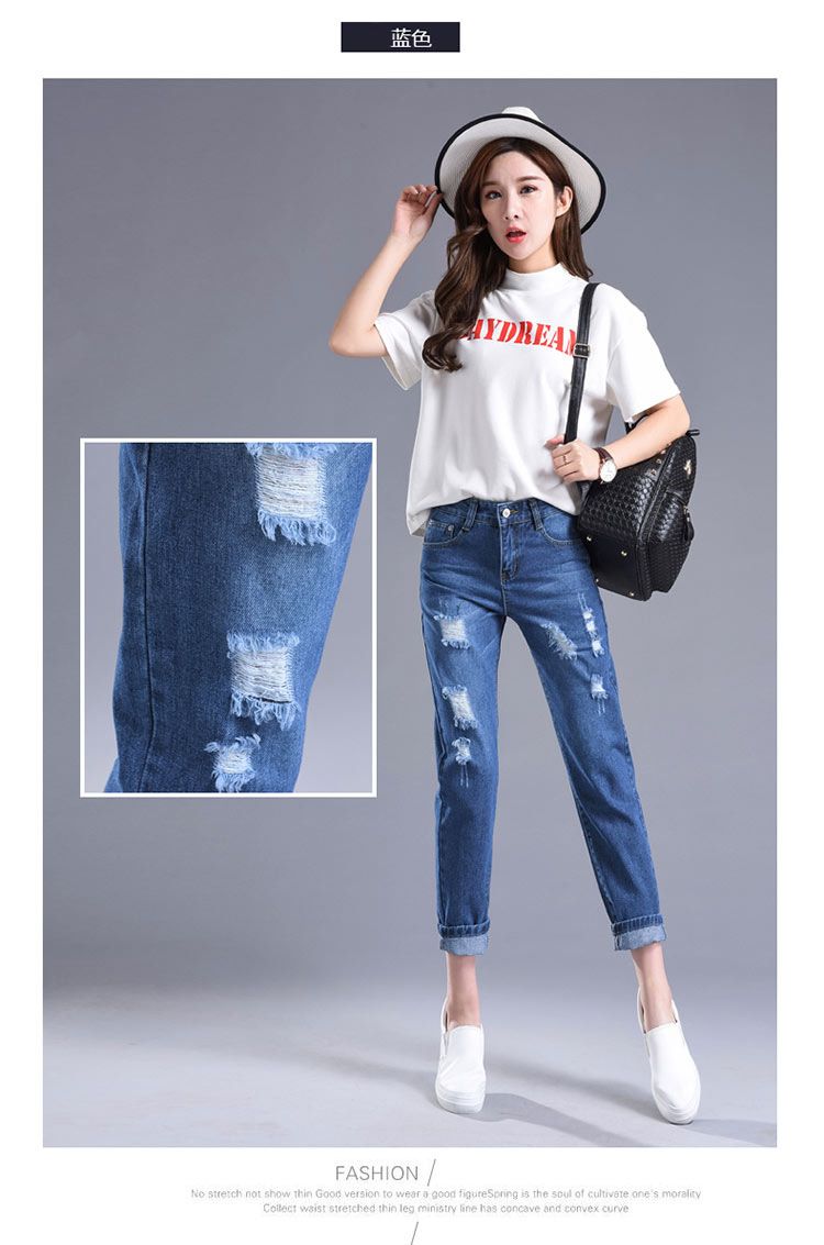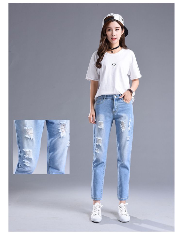 顯高顯瘦經典四色新款破洞牛仔褲【買一送一】【淺藍色】+【深藍】各一條(到手兩條,每條均價649元)