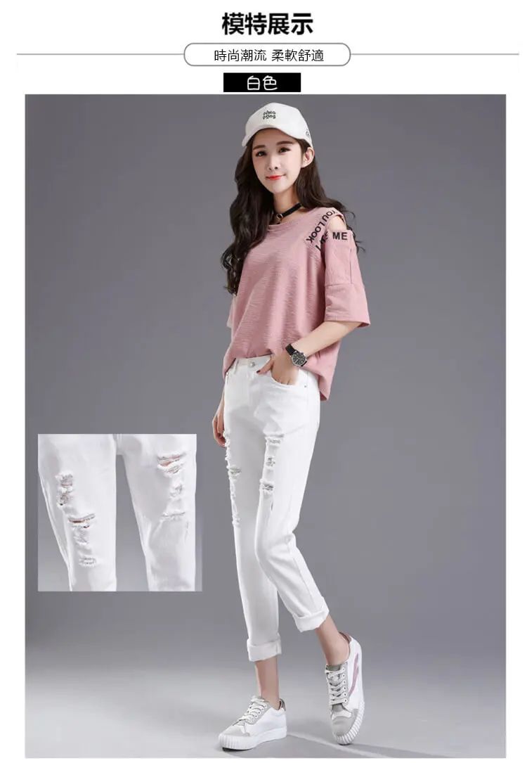 顯高顯瘦經典四色新款破洞牛仔褲【買一送一】【白色】+【黑色】各一條(到手兩條,每條均價649元)