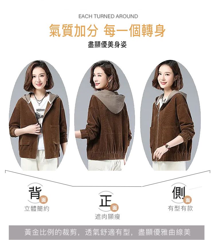 女士燈芯絨外套【買一送一】咖啡色+杏色各一件(到手兩件,每件549元!)