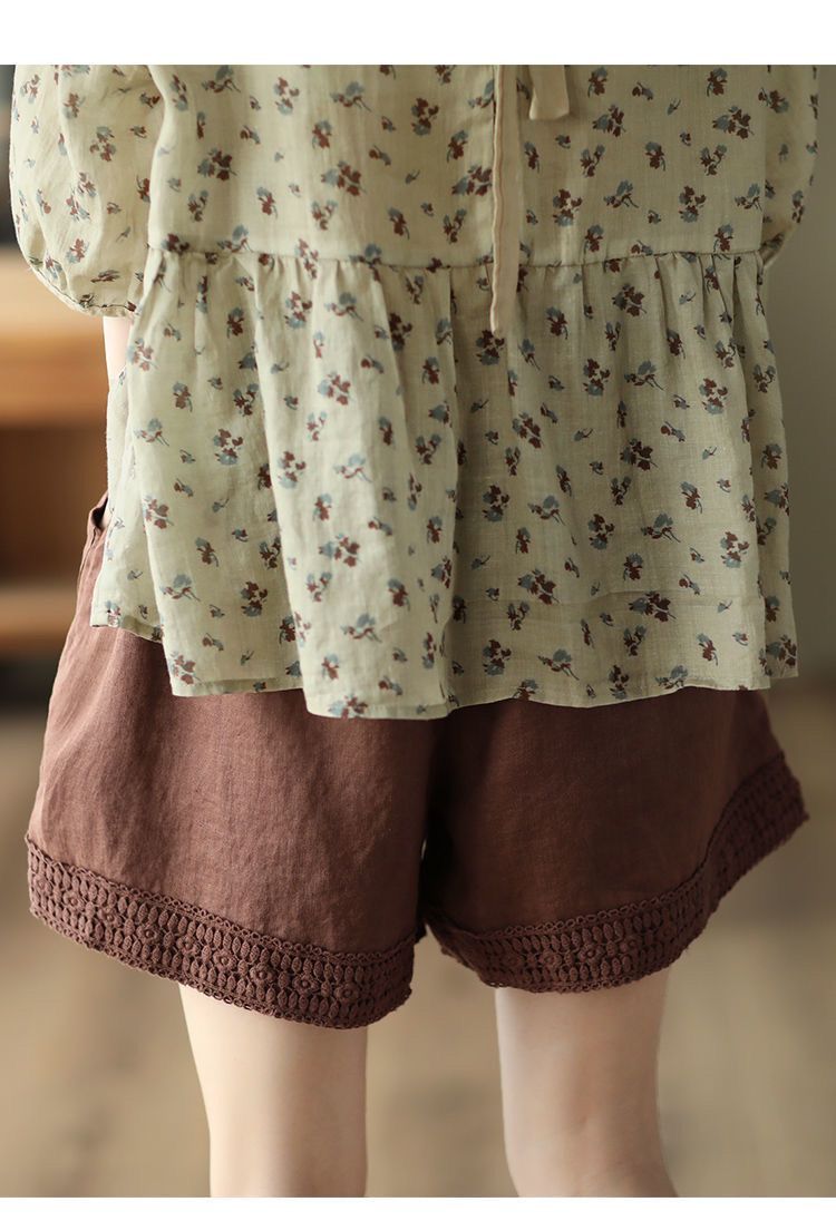 復古鏤空鉤花棉麻短褲【棕咖色】+【咖啡色】各一件(到手兩件,每件均價499元)