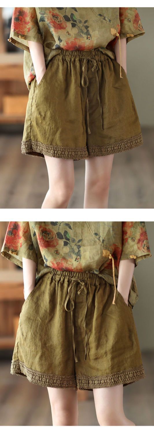 復古鏤空鉤花棉麻短褲【棕咖色】+【杏色】各一件(到手兩件,每件均價499元)