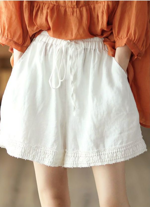 復古鏤空鉤花棉麻短褲【灰藍色】+【杏色】各一件(到手兩件,每件均價499元)