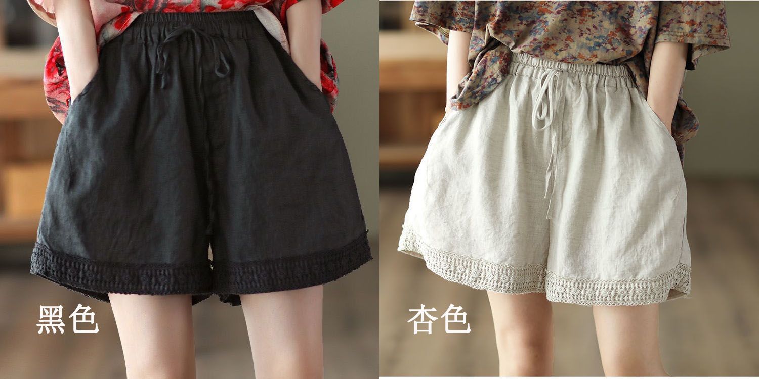 復古鏤空鉤花棉麻短褲【黑色】+【杏色】各一件(到手兩件,每件均價499元)