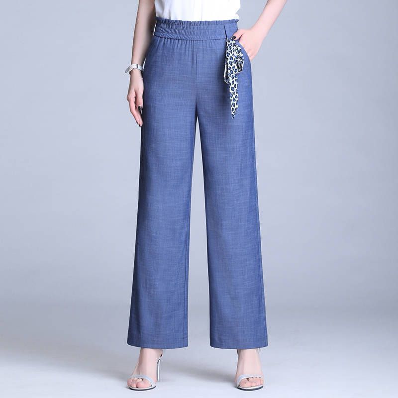 絲巾款垂感闊腿高腰直筒牛仔褲【買一送一】【深藍色】兩條(到手兩條,每條均價549元)