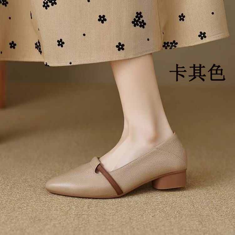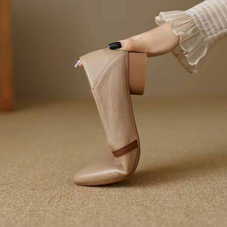 【熱銷爆款!四季可穿!限時特惠買一送一!】粗跟尖頭軟底軟皮一腳蹬女鞋