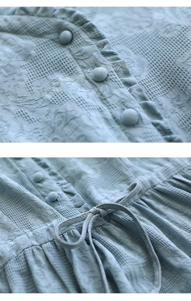 收腰抽繩顯瘦棉麻中長款連衣裙【藍色】一件