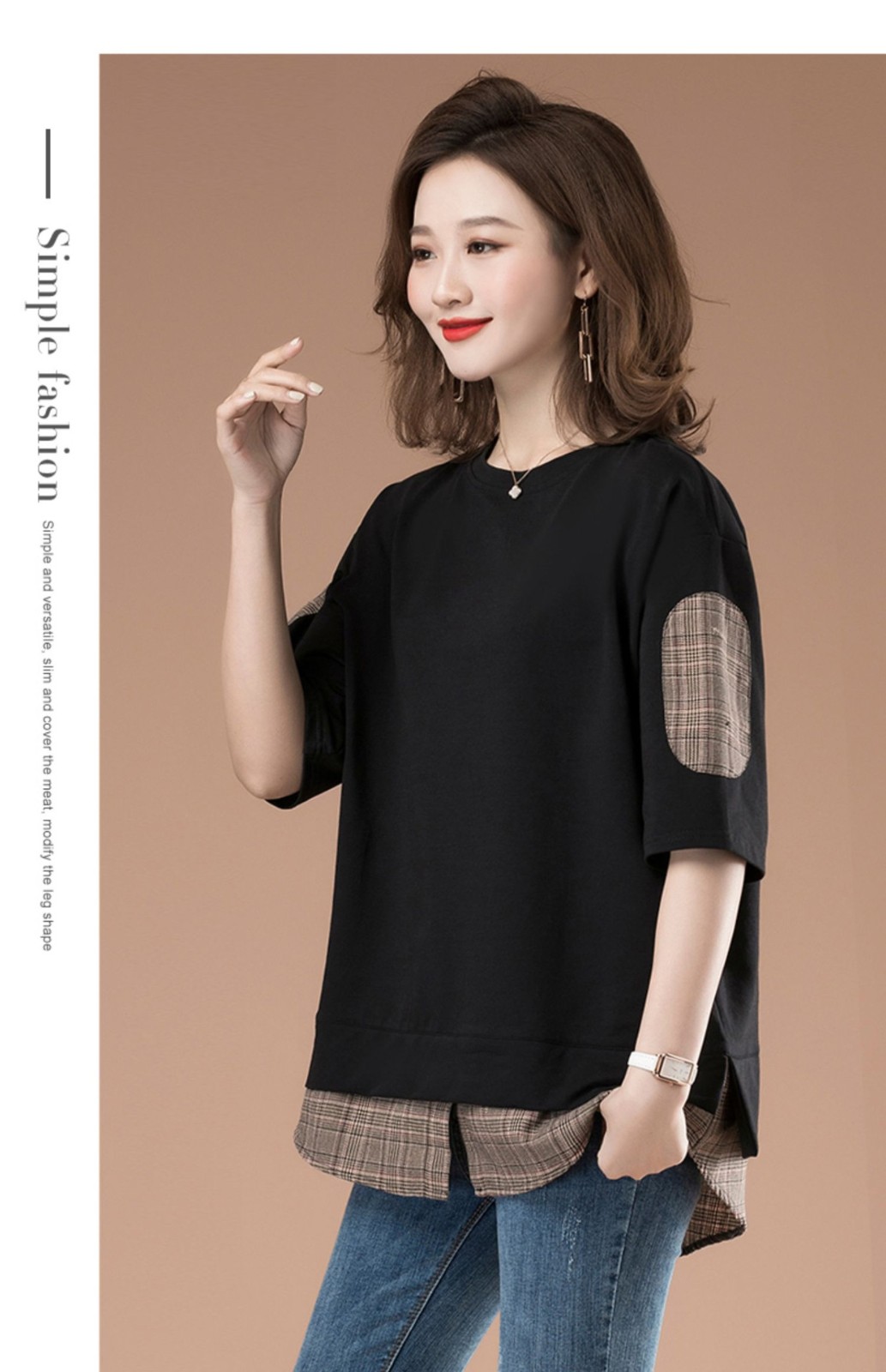 休閒寬鬆設計感假兩件T恤【買一送一】【黑色】+【咖色】各一件(到手兩件,每件均價549元)