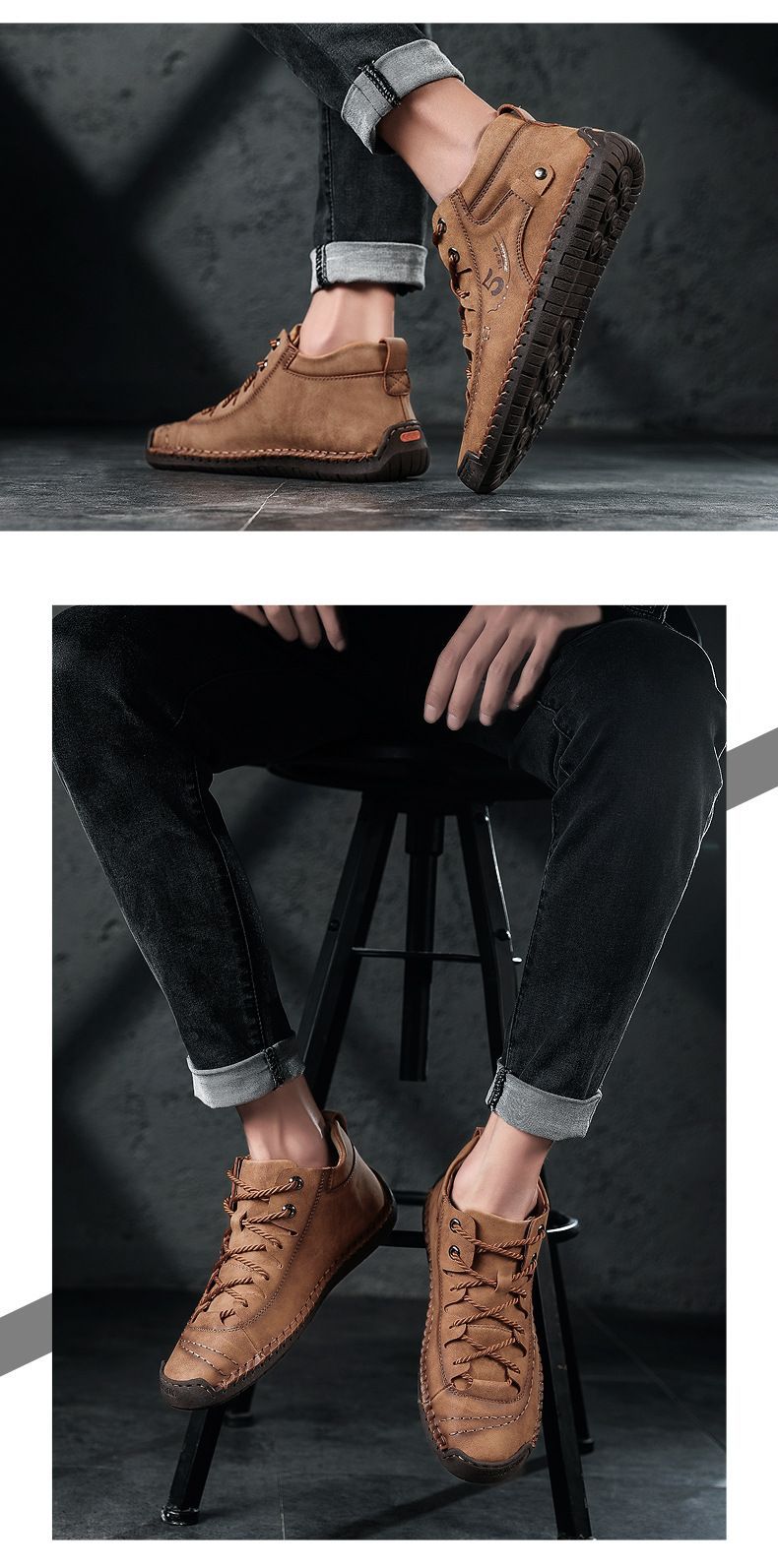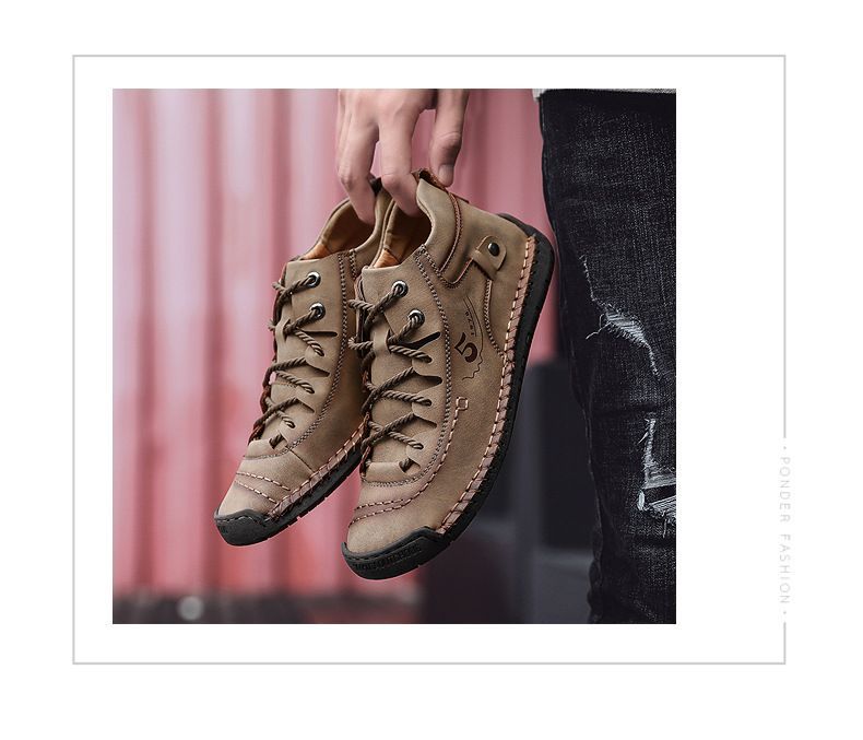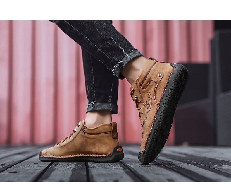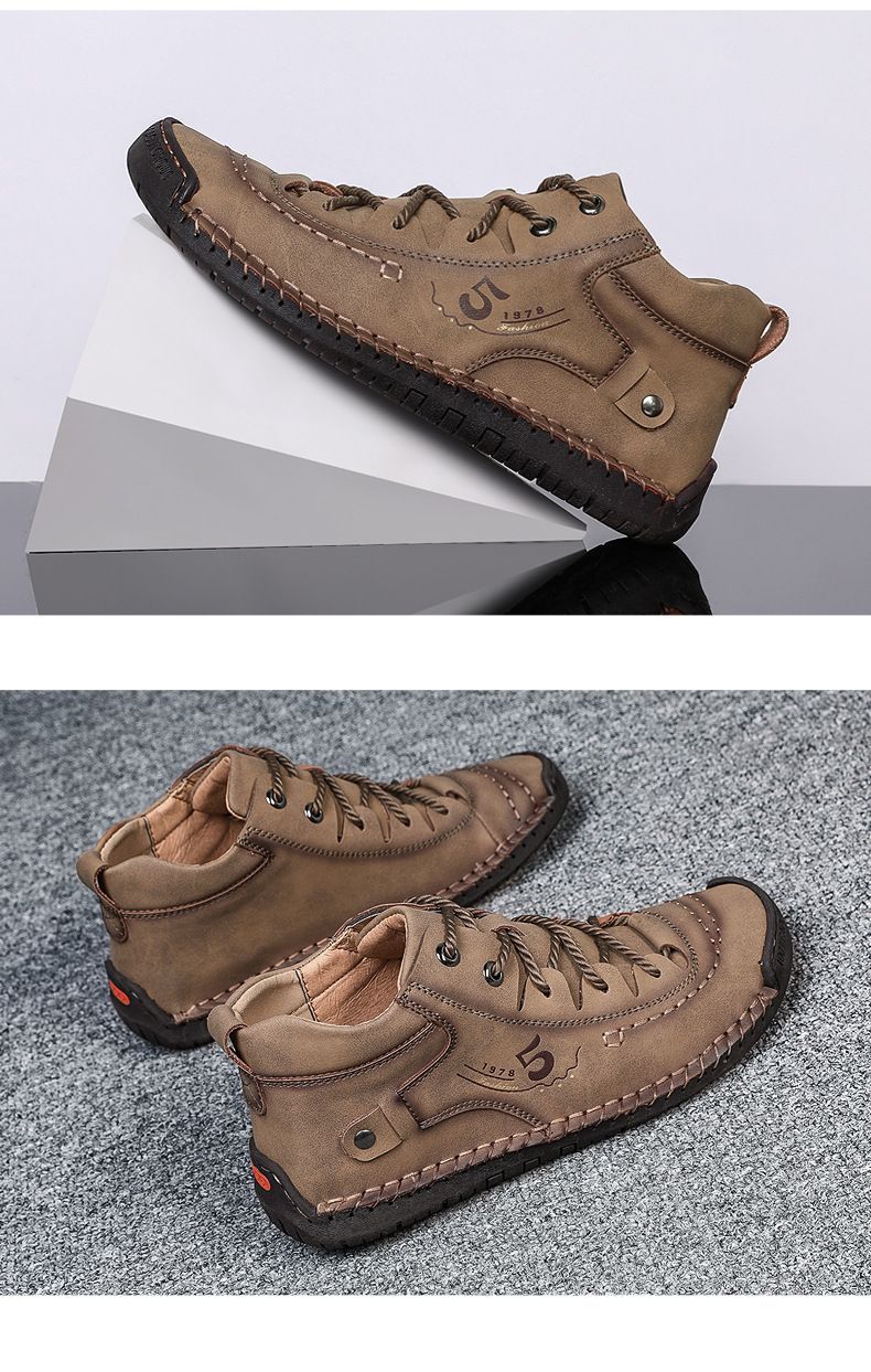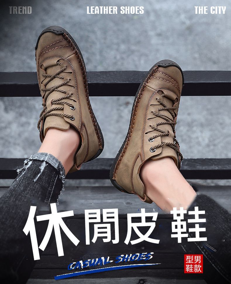 【大老闆專享】復古縫線高幫耐穿潮流工裝皮鞋【卡其色】+【棕色】各一雙(優惠400)