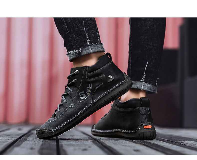【大老闆專享】復古縫線高幫耐穿潮流工裝皮鞋【黑色】一雙
