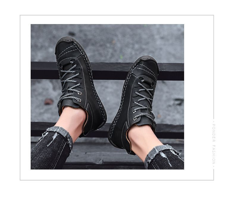 【大老闆專享】復古縫線高幫耐穿潮流工裝皮鞋【棕色】+【黑色】各一雙(優惠400)