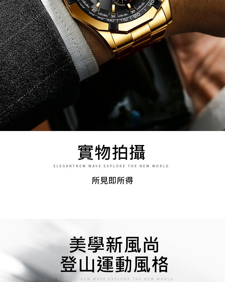 【美學新風尚】超大新日曆大錶盤男士手錶【全金金面】一塊