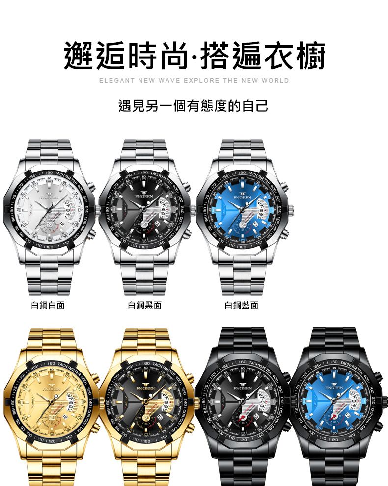 【美學新風尚】超大新日曆大錶盤男士手錶【白鋼白面】一塊