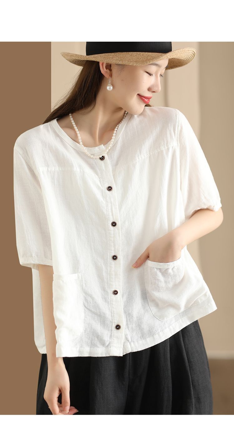 口袋設計復古氣質棉麻襯衫【白色】+【黑色】各一件(到手兩件,每件均價499元)