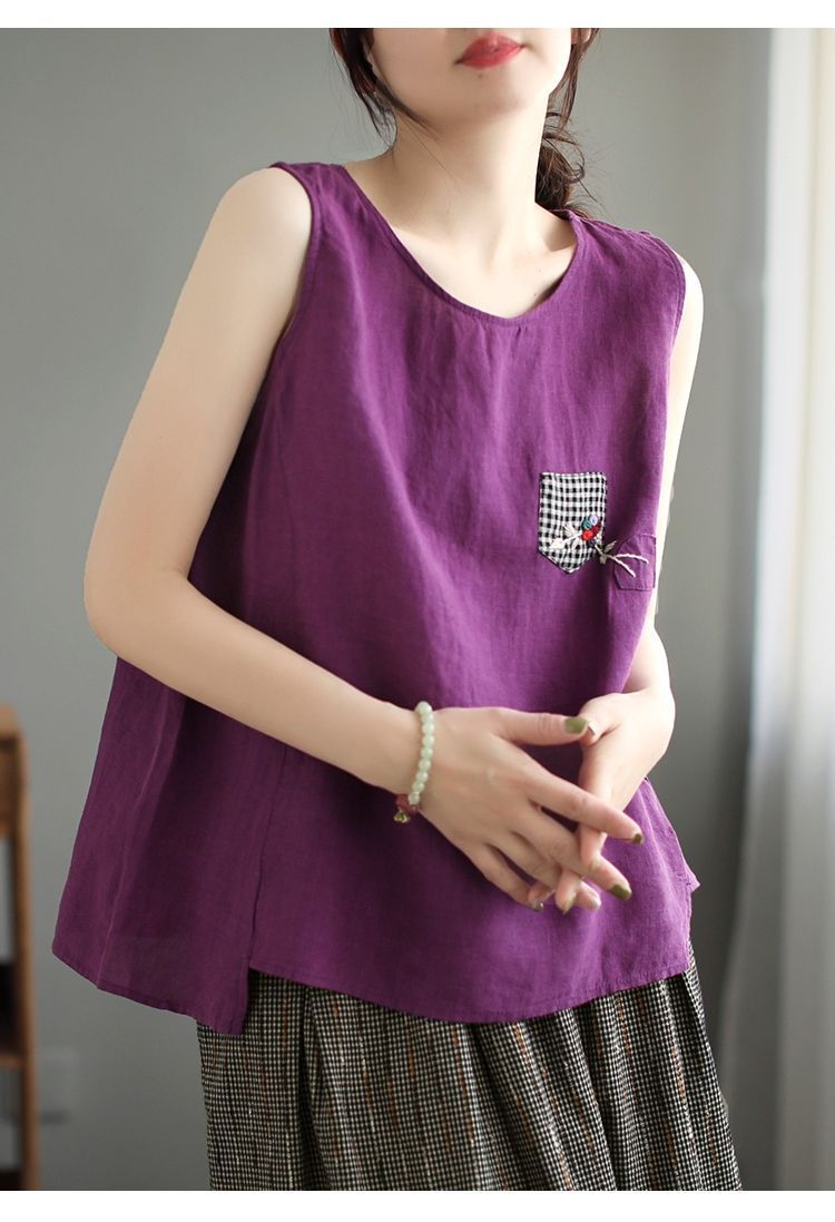 民族風拼接棉麻百搭背心【買一送一】綠色+紫色各一件(到手2件!每件均價499元!)